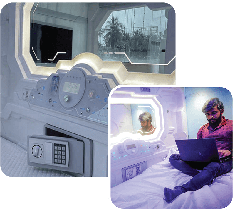 Perfectly located in Kochi, our single-occupancy POD hotel offers unmatched flexibility and affordable luxury. Enjoy comfortable, inviting spaces for relaxation or work in our beautifully designed pods.